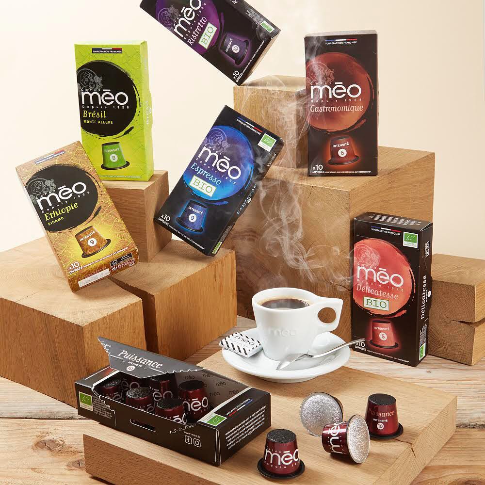 Cafés Méo poursuit son développement en mettant en avant des techniques innovantes au service de la tradition et lance ses propres capsules compatibles avec les machines Nespresso®. (Marque appartenant à un tiers n’ayant aucun lien avec les cafés Méo).